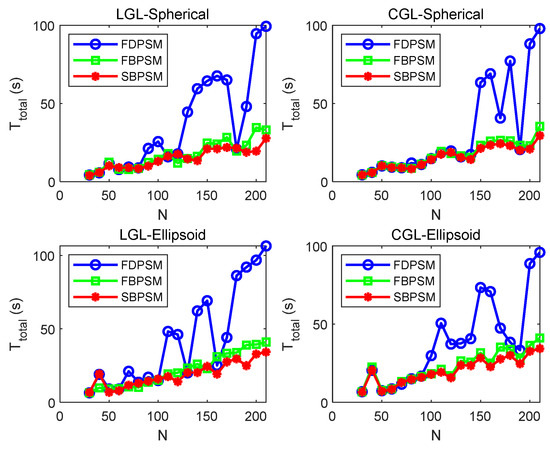 where the scalar represents the order of the orthogonal polynomials and the number of grid points is . The well-conditioned Gauss–Lobatto (GL) points are chosen as the discrete grid points [35].