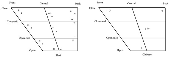 Monophthong contrasts between Thai (Slayden, 2009, p. 4) and Chinese (Lee & Zee, 2003, p. 110).