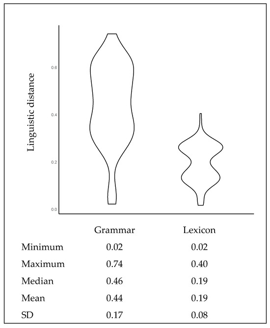 - Nerbonne, J., & Kleiweg, P. (2003). Lexical distance in LAMSAS. Computers and the Humanities, 37(3), 339–357. [Google Scholar] [CrossRef]