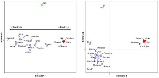 - Bompolas, S., & Melissaropoulou, D. (2023a). A dialectometric approach to inner Asia Minor Greek: Comparisons and associations between linguistic levels. Digital Scholarship in the Humanities, 38(4), 1389–1403. [Google Scholar] [CrossRef]