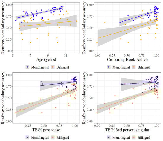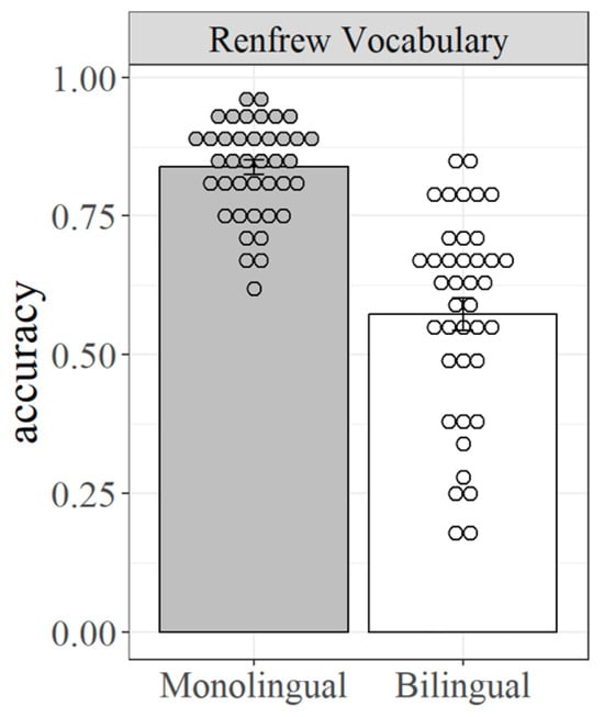 - Wood, C., Hoge, R., Schatschneider, C., & Castilla-Earls, A. (2021). Predictors of item accuracy on the Test de Vocabulario en Imagenes Peabody for Spanish-English speaking children in the United States. International Journal of Bilingual Education and Bilingualism, 24(8), 1178–1192. [Google Scholar] [CrossRef] [PubMed]