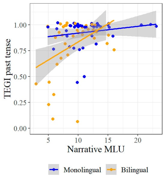 - measures of morphological complexity (e.g., MLU) in the narrative task will predict accuracy on the standardised TEGI task, and