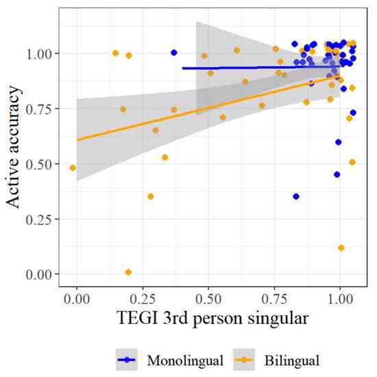 As for the third person singular, participants’ responses were scored as either correct (1) or incorrect (0), and each trial was entered into the dataset individually.