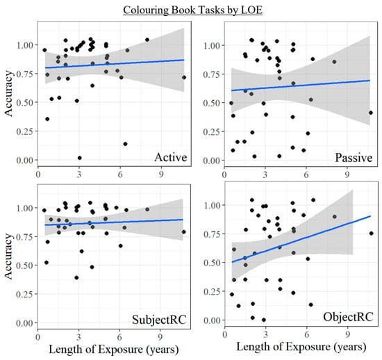 - Roesch, A. D., & Chondrogianni, V. (2016). ‘Which mouse kissed the frog?’ Effects of age of onset, length of exposure, and knowledge of case marking on the comprehension of wh-questions in German-speaking simultaneous and early sequential bilingual children. Journal of Child Language, 43(3), 635–661. [Google Scholar] [CrossRef] [PubMed]
