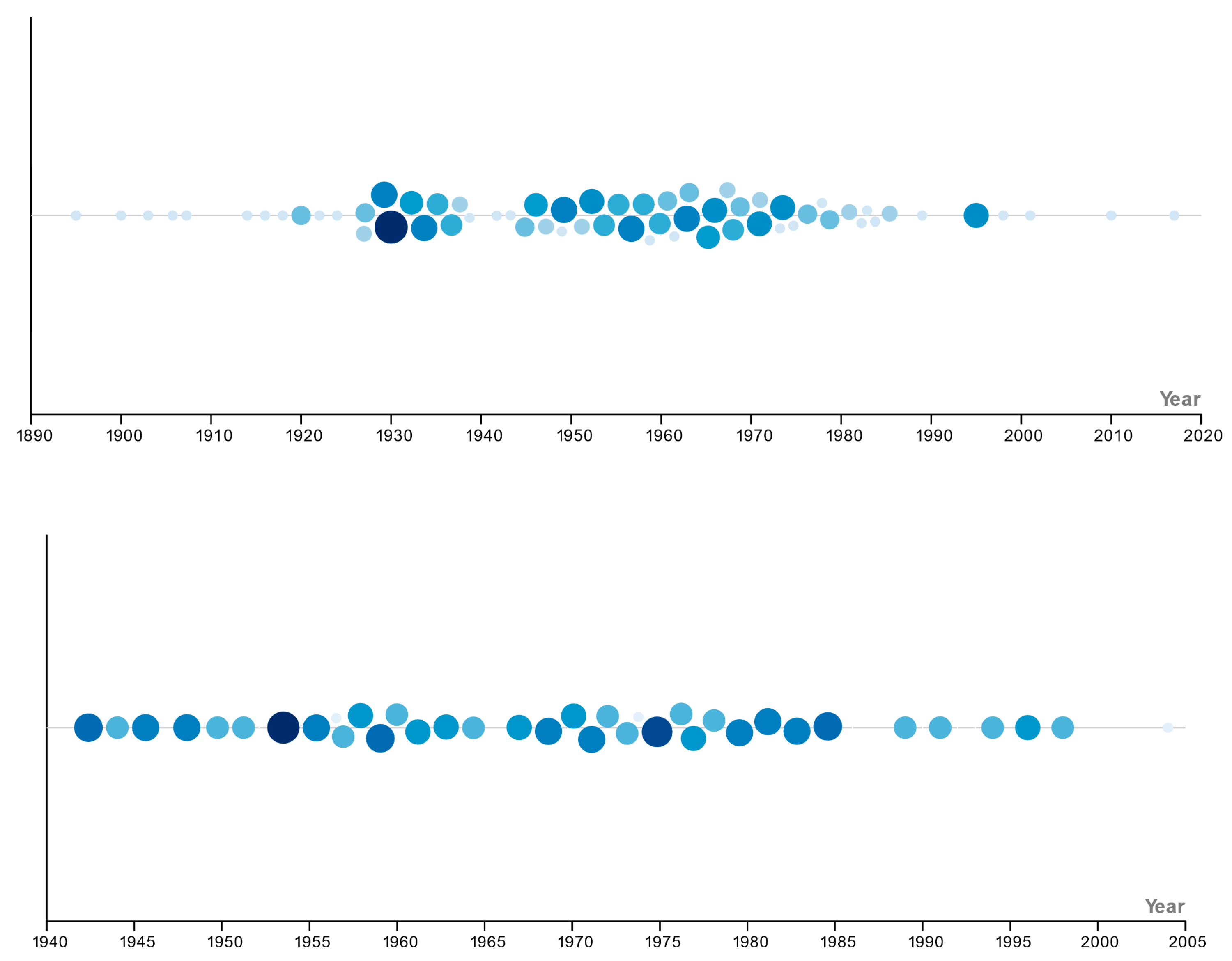 The peak productivity of the NM:Cxn coincides in time with that of the 8/4.Cxn, suggesting some kind of mutual influence between both sister constructions. Its vitality, though, appears stronger in subsequent decades. As the NM.Cxn is more humorous than the 8/4.Cxn, the temporal precedence of the former over the latter makes sense, since a “shift from humorous to more humorous mode” seems plausible once an initial construction has paved the way.