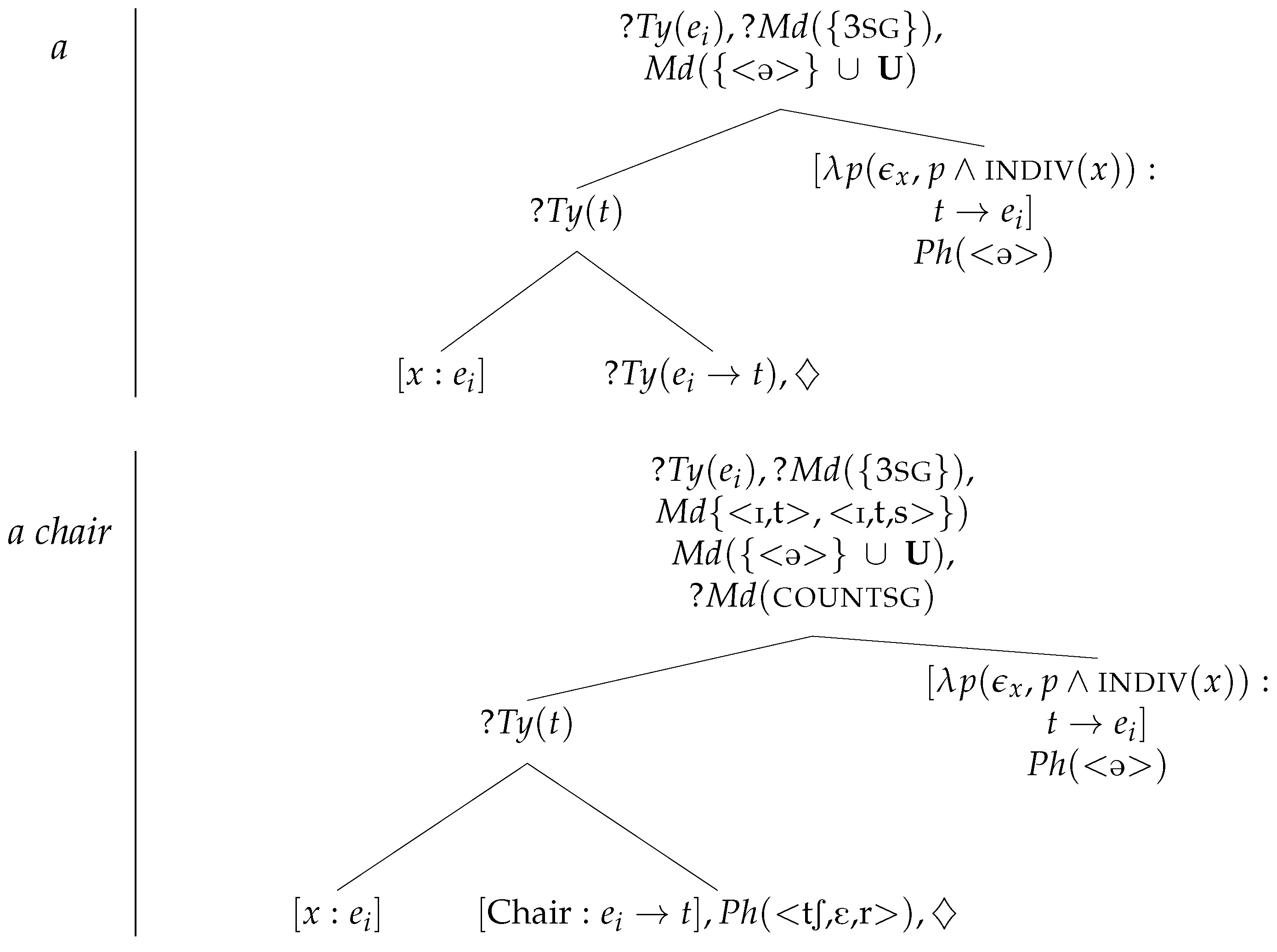 Traditionally, agreement patterns in English (and other modern Germanic languages) are discussed in terms of there being two numbers, singular and plural, three genders, masculine, feminine and neuter, and three persons, first, second and third, and agreement (or concord) patterns are defined in terms of these categories. However, as briefly discussed at the end of the introductory section, these categories have limited, if any, usefulness in the grammatical system of English, given the very restricted agreement patterns displayed. In order to account for gender and number agreement between anaphoric and reflexive pronouns and their antecedents, the collocational constraints on determiner plus noun combinations and the vestigial subject–verb agreement, I do not mimic such grammatical categories directly and propose instead to reference the forms of agreeing words to capture the allowable collocations. To this end, I introduce a new label (for ‘morphological dependency’) which takes as values sets of phonological forms, i.e., sets of ordered sets of phonemes. As will become evident during the discussion, the set of forms that need to be set up to act as values to the label is not only finite but very small and restricted to closed-class expressions such as pronouns and determiners. I begin by analysing anaphoric agreement, and then move on to determiner–noun concord and finally to subject–verb agreement.