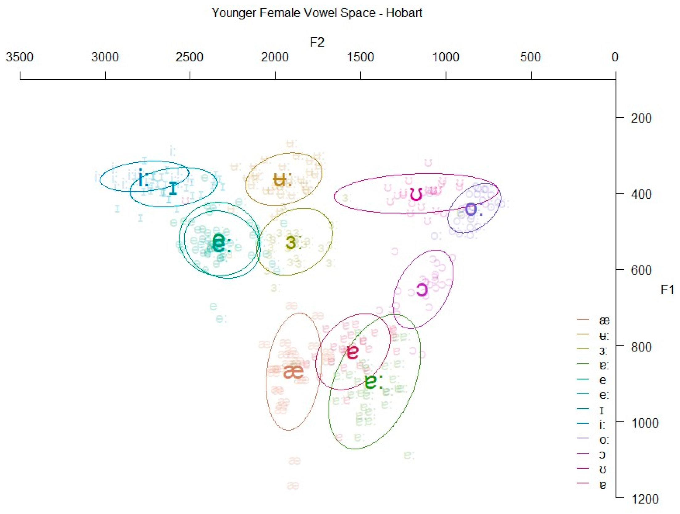 - What is the nature of the F1/F2 monophthongal vowel space in Hobart English?