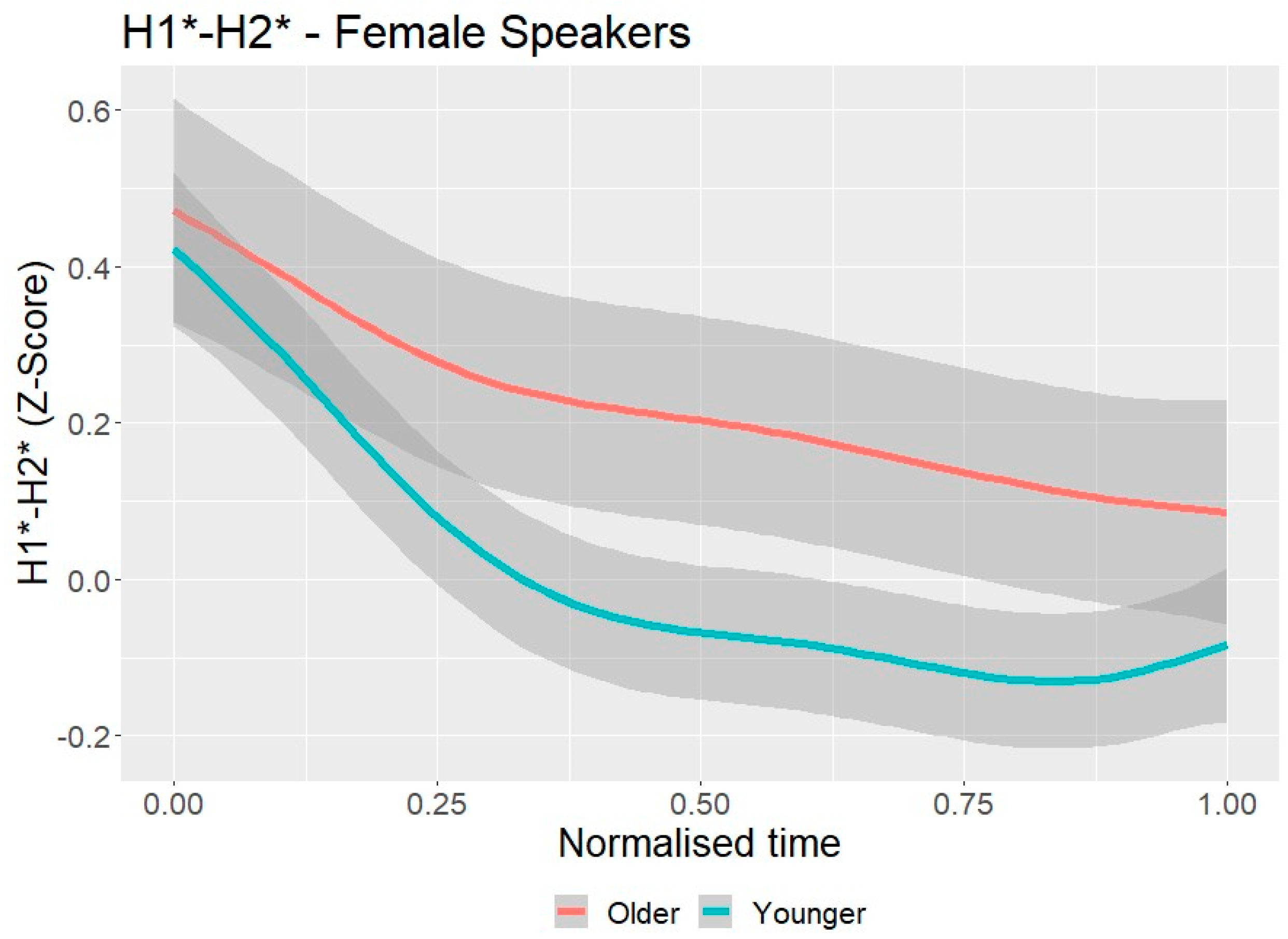 | /e/ | Female | Older vs. | 425 | 15.9 | 38 | −4.763 | <0.0001 |