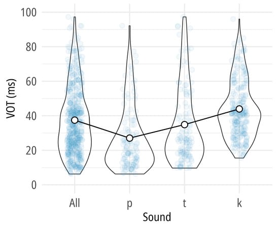 - Abramson, A. S., & Whalen, D. (2017). Voice Onset Time (VOT) at 50: Theoretical and practical issues in measuring voicing distinctions. Journal of Phonetics, 63, 75–86. [Google Scholar] [CrossRef]