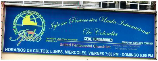 In contrast to previous studies, in which religious temples are an important part of multilingualism in cities with significant migration patterns (; ), religious temples in Armenia do not present this phenomenon. This suggests that, although there have been migration patterns toward Colombia in the last ten years (), the contact that occurs is interdialectal rather than multilingual. That is, the people arriving seeking refuge in Colombia are native Spanish speakers, so the use of different languages that address a broader diaspora is not necessary. The cases of bilingualism in our corpus point more toward the international nature of these religious institutions, which use English emblematically or identitarily to show their international affiliation, as illustrated in Figure 6.