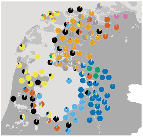 As is clear from the map, the clusters inferred from the admixture analysis were geographically contiguous and fit earlier typologies of the dialects in the Zuiderzee area. As such, we have tried to name them accordingly in our description (see also Table 2).