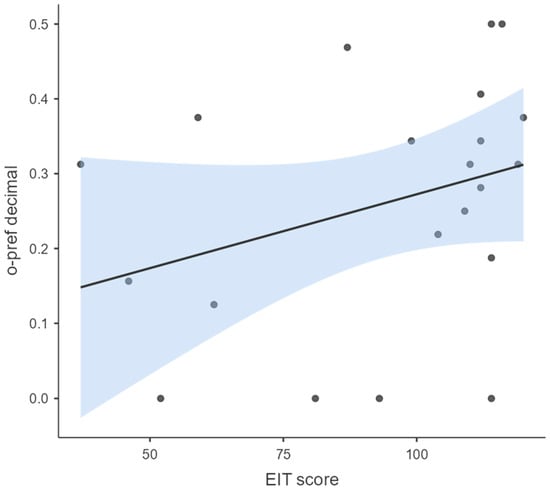 Scatterplot of individual participants by EIT score and rate of selection of deletion (preference task).