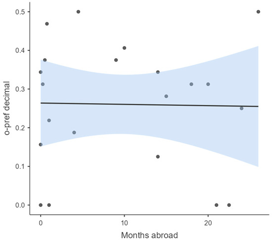 Scatterplot of individual participants by months abroad and rate of selection of deletion.
