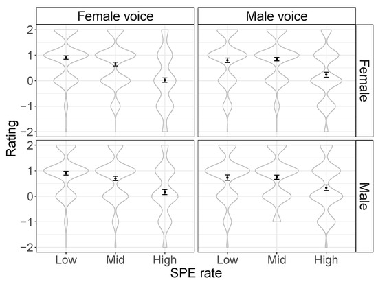 Overall SPE appropriateness perception: voice gender, SPE rate, and listener gender.