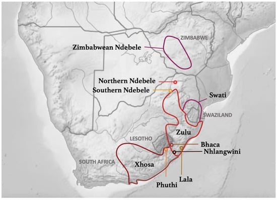 - Gunnink, H., Chousou-Polydouri, N., & Bostoen, K. (2022). Divergence and contact in Southern Bantu language and population history: A new phylogeny in cross-disciplinary perspective. Language Dynamics and Change, 13(1), 74–131. [Google Scholar] [CrossRef]