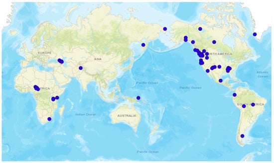 - Grollemund, R., Branford, S., Bostoen, K., Meade, A., Venditti, C., & Pagel, M. (2015). Bantu expansion shows that habitat alters the route and pace of human dispersals. Proceedings of the National Academy of Sciences, 112(43), 13296–13301. [Google Scholar] [CrossRef]
