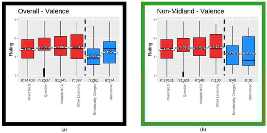 - Warriner, A. B., Kuperman, V., & Brysbaert, M. (2013). Norms of valence, arousal, and dominance for 13,915 English lemmas. Behavior Research Methods, 45(4), 1191–1207. [Google Scholar] [CrossRef]