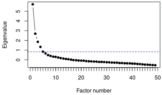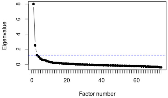- Cattell, R. B. (1966). The scree test for the number of factors. Multivariate Behavioral Research, 1(2), 245–276. [Google Scholar] [CrossRef] [PubMed]