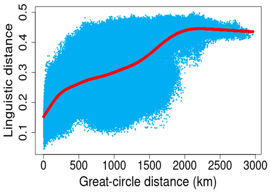- Onishi, T. (2019). On the relationship of the degrees of correspondence of dialects and distances. Languages, 4(2), 37. [Google Scholar] [CrossRef]