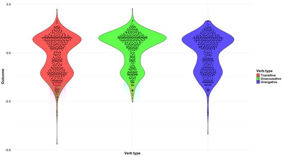 | 27 | Verb type was not included, as it is not predictive for Italian. Moreover, the (general) model excluding verb type has a lower RMSE (Root Mean Squared Error) than the one including it, indicating more accurate predictions. Since RMSE measures the average difference between predicted and actual values, a lower RMSE reflects better model performance. |