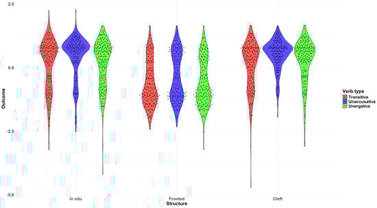 | 22 | Raw scores (before normalization) are the following: Transitive/In situ = 4.50; Transitive/FF = 2.84; Transitive/CC = 4.34; Unergative/In situ = 4.57; Unergative/FF = 3.04; Unergative/CC = 4.77; Unaccusative/In situ = 5.04; Unaccusative/FF = 3.47; Unaccusative/CC = 4.86. |