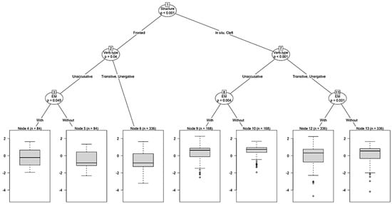 - Fokkema, M., Smits, N., Zeileis, A., Hothorn, T., & Kelderman, H. (2018). Detecting treatment-subgroup interactions in clustered data with generalized linear mixed-effects model trees. Behavior Research Methods, 50, 2016–2034. [Google Scholar] [CrossRef] [PubMed]
