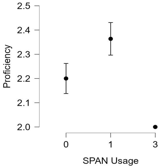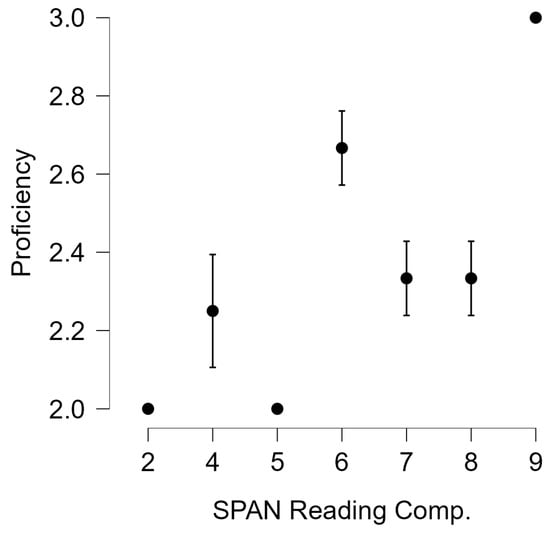 However, there was some meaningful correlation between the participants’ self-ratings of their level of reading comprehension in Spanish and their Spanish proficiency. This correlation is reported in Figure 4.