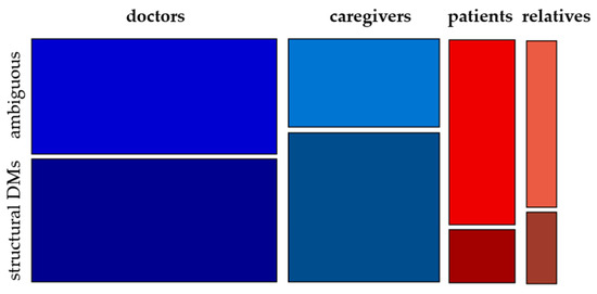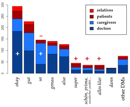 Moreover, group-specific differences in the usage of structural DMs are addressed (Section 3.3). On the one hand, the linguistic behavior of the clinical staff is contrasted with those of patients and their relatives. On the other hand, the Palliative Care corpus (cf. Buck, 2022) also allows for comparisons between physicians and professional caregivers in the clinic.