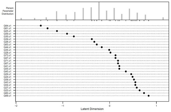 Table 5 shows a summary of Wald’s test for the dichotomous Rasch model. According to Wald’s test, Q26 was identified as misfit (p < 0.05), suggesting potential irregularities within the item.