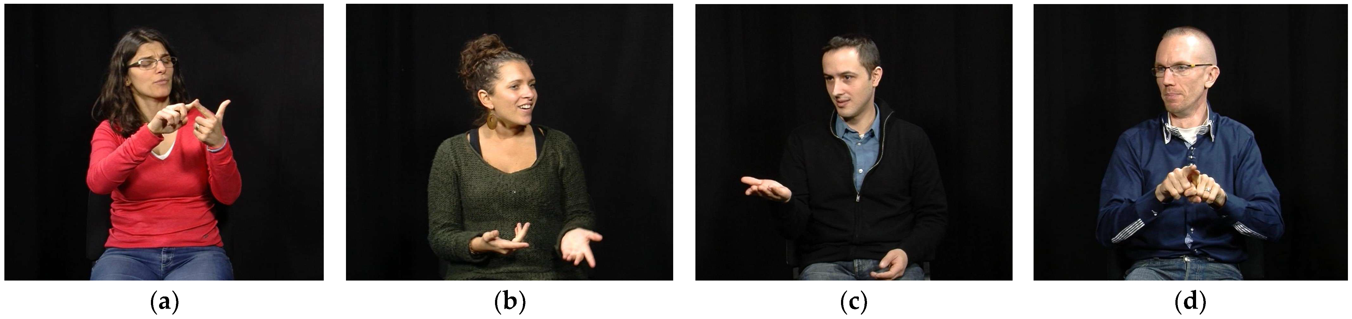 - Meurant, L. (2015). LSFB Corpus. A digital open-access corpus containing videos and annotations in French Belgian Sign Language. Fonds National de la Recherche Scientifique—FNRS and University of Namur. Available online: http://www.corpus-lsfb.be (accessed on 18 April 2025).