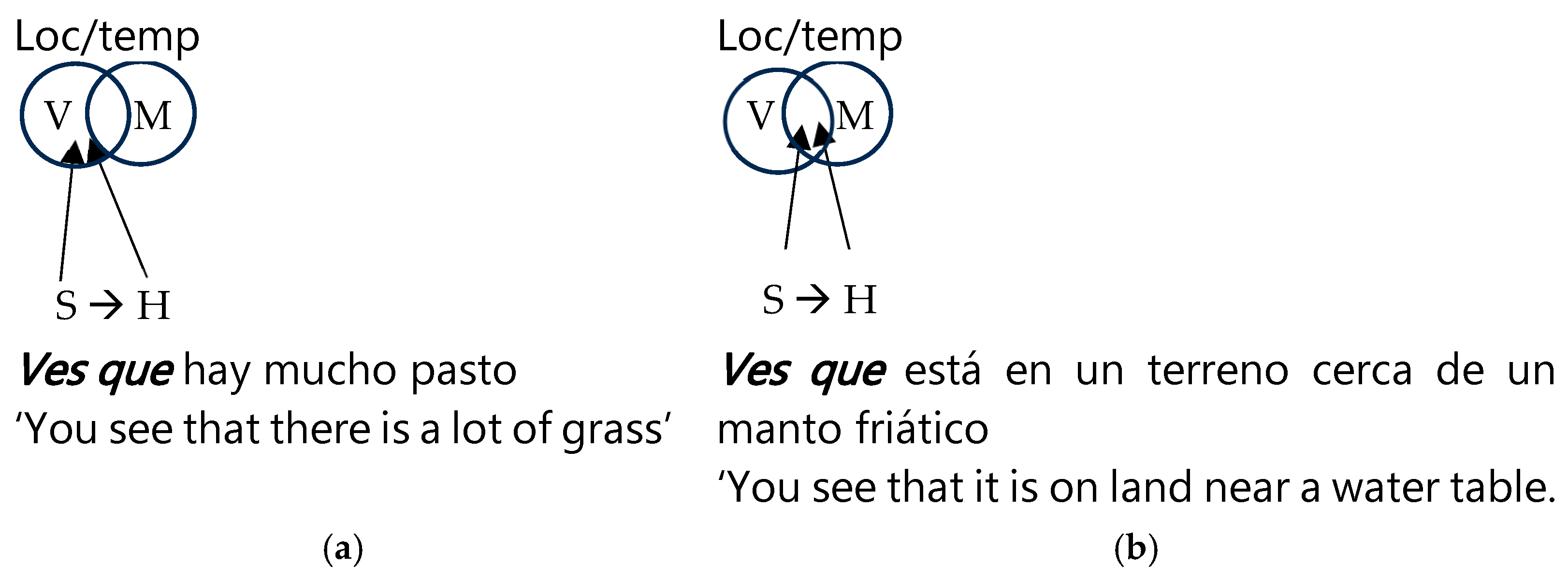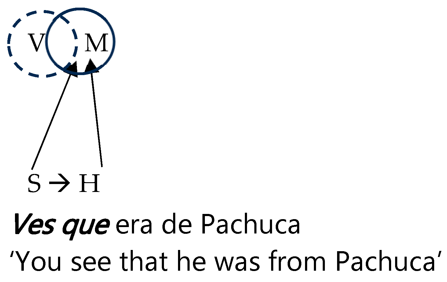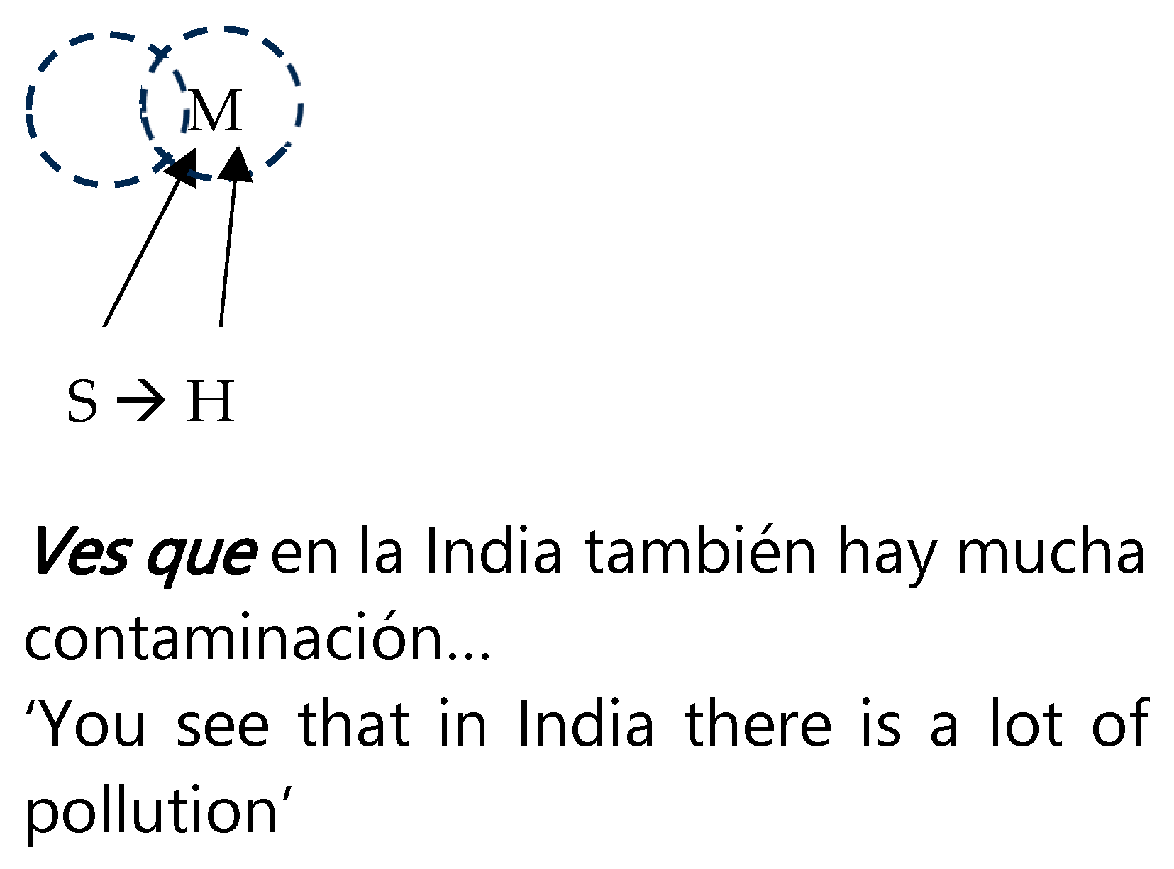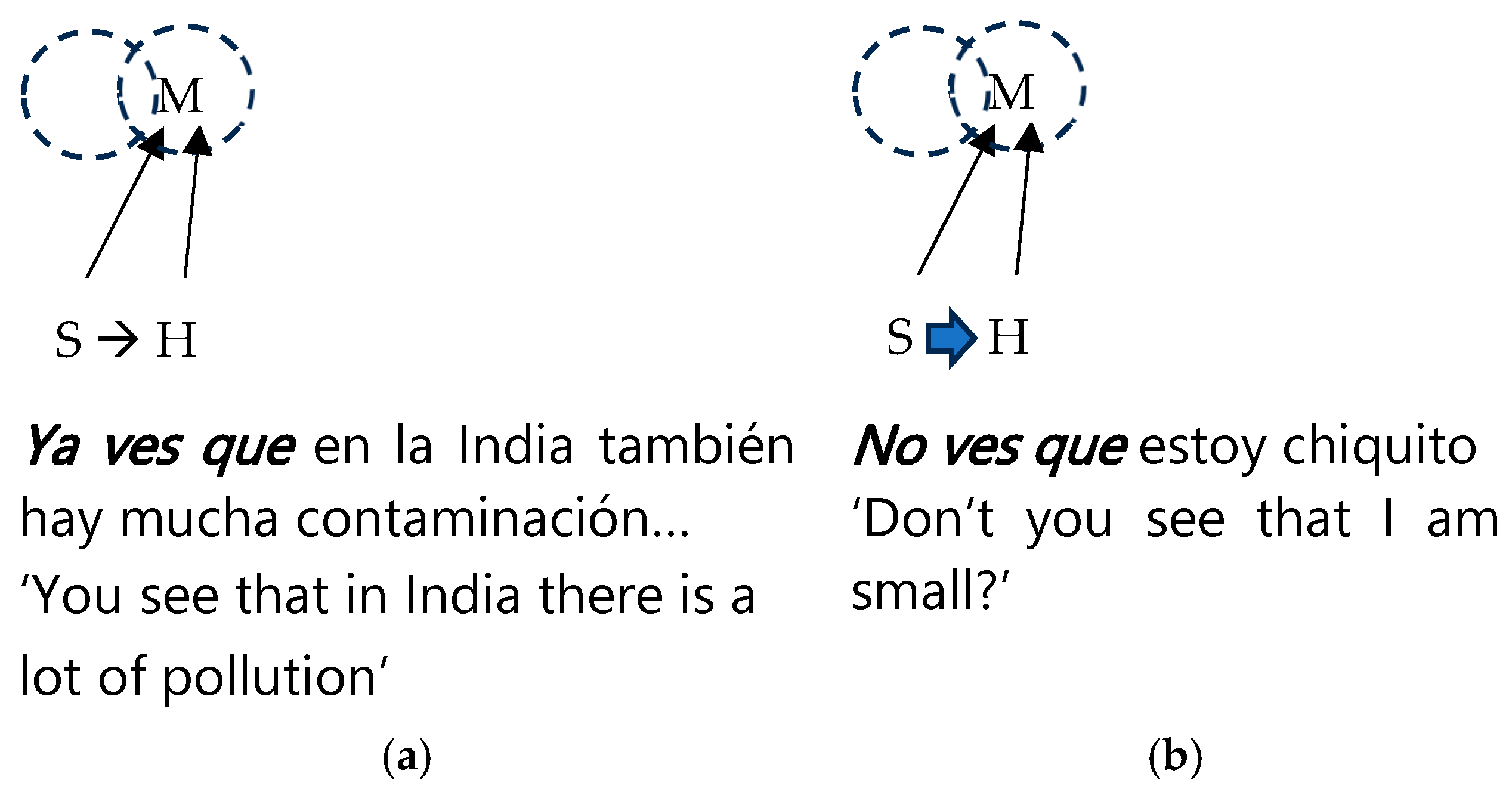 no ves que is the stress the negative construction, encoded as a rhetorical question, imposes on the hearer as a requirement for the information to be already activated. This is indicated by the thick horizontal arrow from S to H in