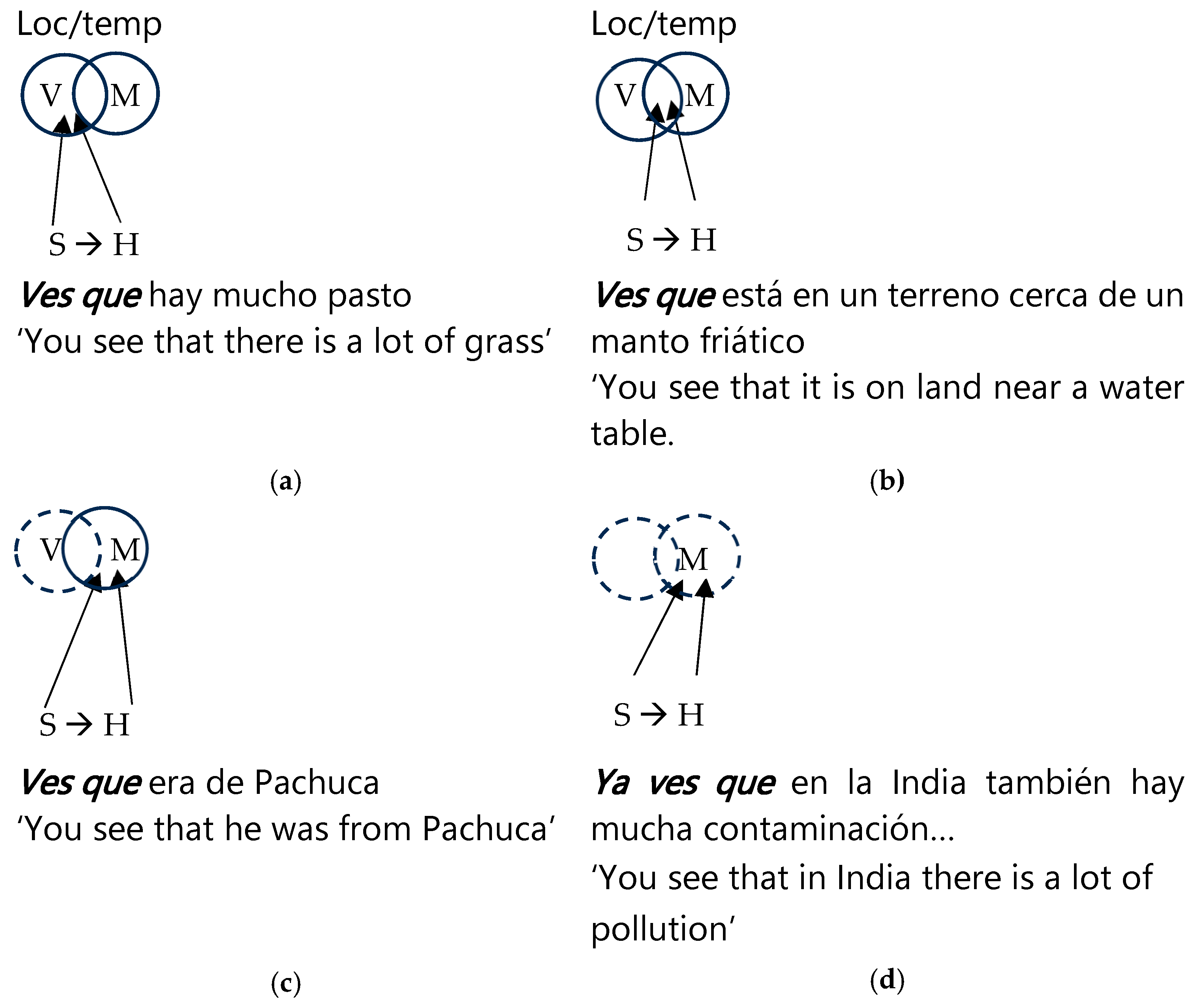 ya ves que allows fictive mental spaces to be construed for intersubjective interpretation where new information may be presented as speaker–hearer common knowledge. We will show that the bleaching processes outlined above determine the emergence of different degrees of evidential, epistemic, and, for negative polarity, mirative functions.