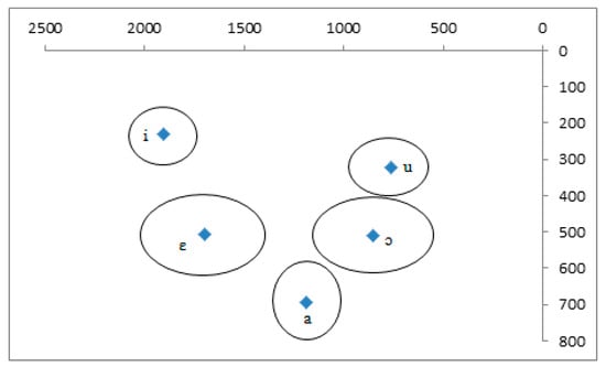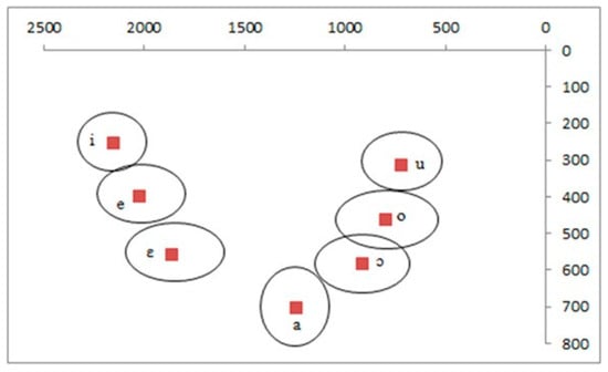 Dispersion area of the vowel system of southern Italian in Hz (adapted from Romito, 2003).