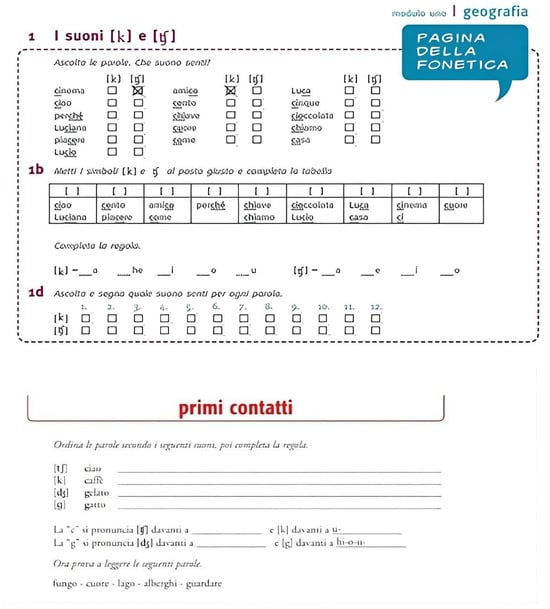 Examples of phonetic exercises from Domani and Nuovo espresso, respectively.