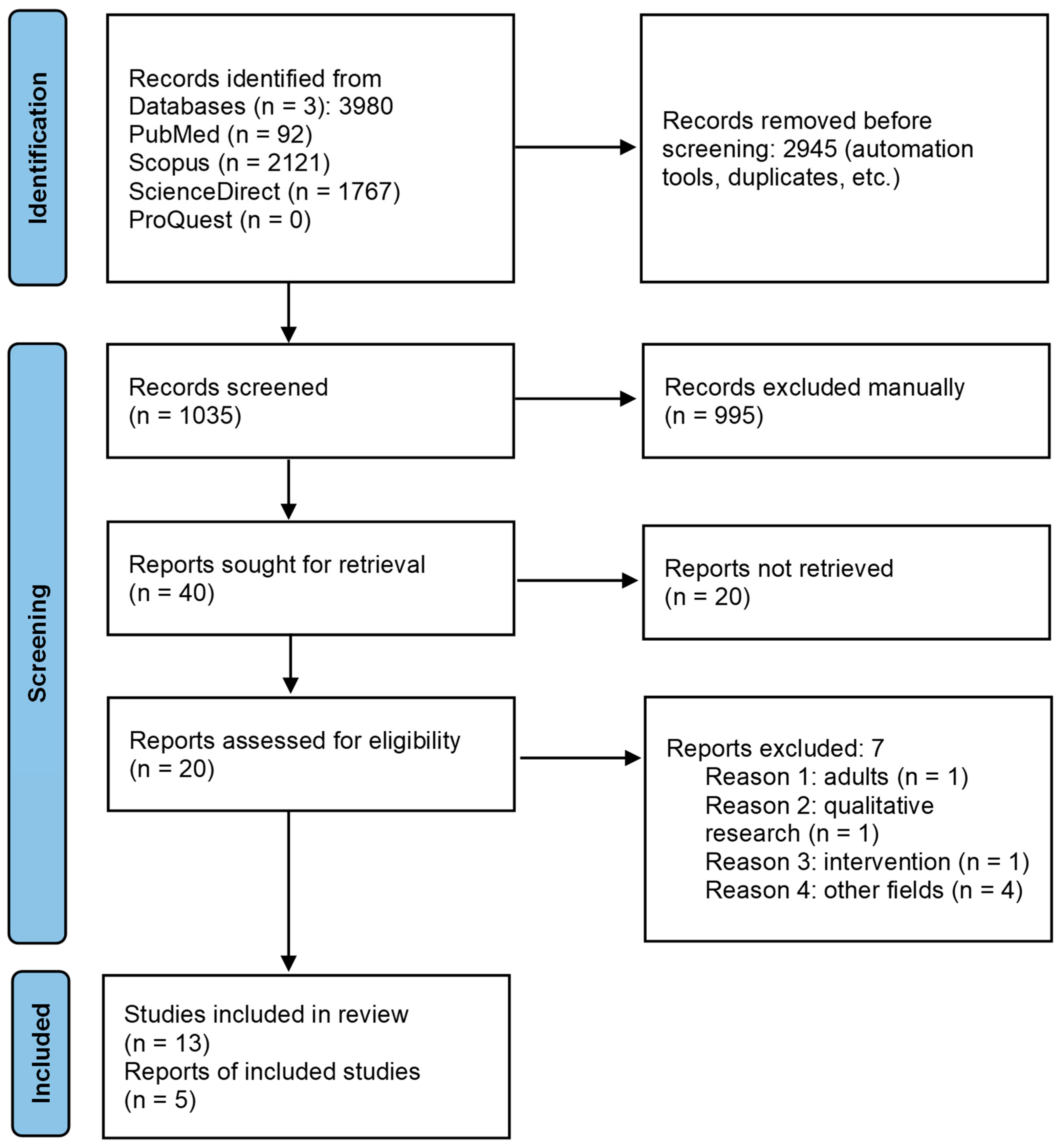 - Page, M. J., McKenzie, J. E., Bossuyt, P. M., Boutron, I., Hoffmann, T. C., Mulrow, C. D., Shamseer, L., Tetzlaff, J. M., Akl, E. A., Brennan, S. E., Chou, R., Glanville, J., Grimshaw, J. M., Hróbjartsson, A., Lalu, M. M., Li, T., Loder, E. W., Mayo-Wilson, E., McDonald, S., … Moher, D. (2021). The PRISMA 2020 statement: An updated guideline for reporting systematic reviews. International Journal of Surgery, 88, 105906. [Google Scholar] [CrossRef]