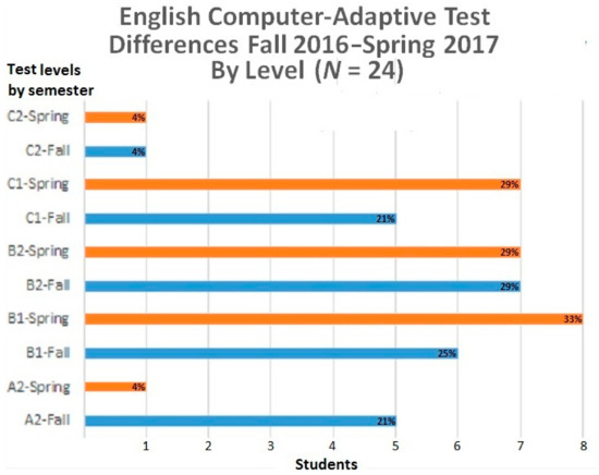 Fall 2016 English Computer-Adaptive Test results relative to Common European Framework of Reference sublevels A2–C2.