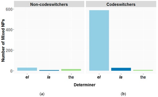 Distribution of mixed noun phrases (NPs) produced by (a) non-codeswitchers and (b) codeswitchers in () Codeswitching Map Task.
