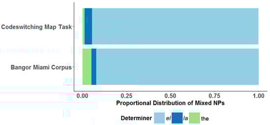 - Blokzijl, Jeffrey, Margaret Deuchar, and M. Carmen Parafita Couto. 2017. Determiner asymmetry in mixed nominal constructions: The role of grammatical factors in data from Miami and Nicaragua. Languages 2: 20. [Google Scholar] [CrossRef]