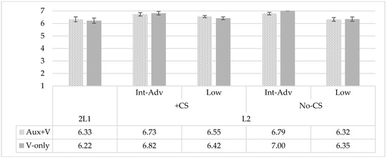 Second, they all scored above the threshold for the intermediate proficiency level of the modified DELE. An overview of the participants comparing various linguistic factors of the 2L1 and L2 bilingual groups is provided in Table 3, including the aforementioned variables, as well as parallel details regarding their English proficiency4 and their daily exposure to both languages.