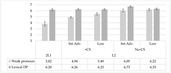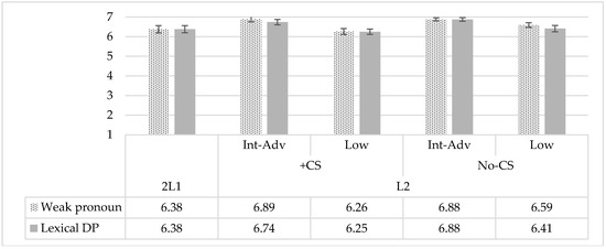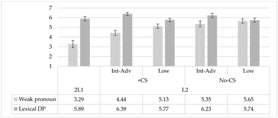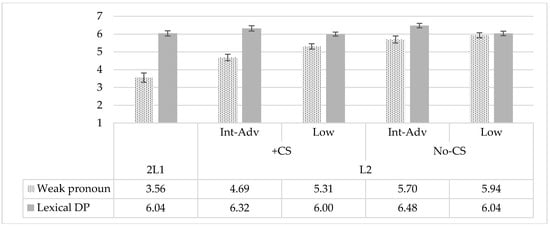 The results of Giancaspro (2015) show that the CS acceptability of both the L2 and 2L1 bilinguals aligned with the CF approach. Interestingly, proficiency was not found to be a relevant factor. L2 participants who scored as advanced, intermediate, and beginner all behaved similarly, rating subject–predicate switches that included a pronoun or auxiliary at the switch point consistently lower than those that did not. Recall, though, that based on the way Toribio (2001) categorized proficiency, all participants in Giancaspro’s study would be considered as intermediate/advanced. In effect, the end results of both Toribio and Giancaspro’s studies point in the same direction: L2 bilinguals with higher proficiency can exhibit theoretically aligned intuitions with regard to intra-sentential CS, suggesting that the developing L2 system also includes acquired linguistic knowledge related to language mixing.
