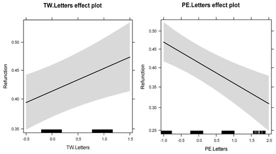 Effect plot for TW.Letters:PE.Letters (interaction effect).