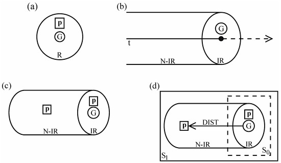 So as shown in Figure 1a, the baseline scenario locates p, the profiled occurrence, in reality (where G is also found). In Figure 1b, R is depicted as a cylinder that “grows” through time (t). The “face” of this cylinder, representing R’s manifestation at the current moment, is referred to as immediate reality (IR). The remainder of R is non-immediate reality (N-IR). Thus p can either be immediate to G (in IR) or non-immediate (in N-IR), as in Figure 1c. Since reality is taken for granted at this stratum, and the time of speaking is a facet of G, immediacy vs. non-immediacy to G translates into present vs. past in time—the prototypical value of the so-called “tense” markers (resembles vs. broke). This correlates with the experiential factor of whether the occurrence can be observed directly or only via memory. Accordingly, the arrow in Figure 1d indicates that prior occurrences lie at a certain distance (DIST) from G both temporally and experientially. And memory being an additional conceptual resource, they also represent a higher stratum. Thus grounding at the baseline level (a main stratum) can itself be differentiated into substrata, with S1 representing an elaboration vis-à-vis S0.
