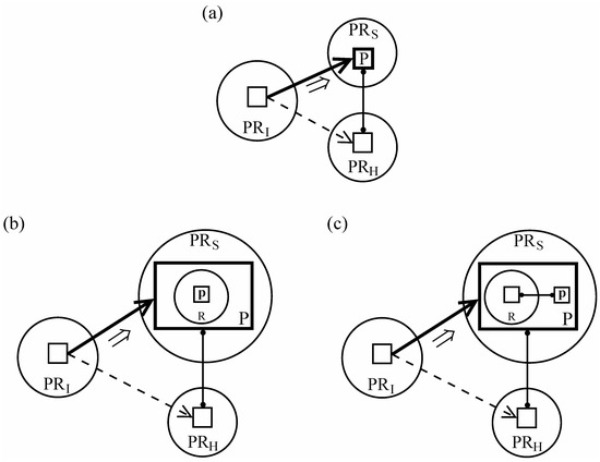 Figure 13a,b show explicitly that there are two levels of assessment. One level pertains to the internal structure of P. P itself is positive or negative depending on whether the profiled occurrence (p) is realized; at issue, then, is whether p is included in R. The higher level of assessment pertains to the status of P. One outcome, for either (a) or (b), is acceptance: P is judged to be valid (part of PRH), and is thus included in the updating of PRS and PRI. Another possibility is rejection: being judged invalid (not part of PRH), P is excluded from the updating of PRS and PRI. More elaborate diagrams would indicate the response and the updating that results.