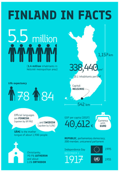 - This is Finland. 2018. Finland in Facts. Available online: https://finland.fi/facts-stats-and-info/finland-in-facts-2/ (accessed on 30 July 2018).