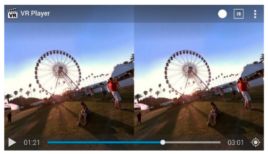 The chosen VR player for the activities was the VR Player Free (http://www.vrplayer.com) (Figure 2), due to its small size (2.8 mb) and simplicity. The video content was aligned with the topics of the French course, comprising countries and nationalities, dreams and desires, vacations and traditional events, among others that are described in the Section 7. Students used HMDs to experience VR videos between the pre- and post- parts of activities.