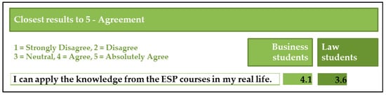 Business students’ and Law students’ opinions towards the application of ESP in real life.