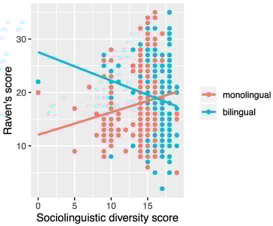Visual representation of the interaction between sociolinguistic diversity and bilingualism on the Raven’s score.