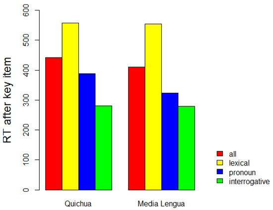 Figure 5. Time to target image by stimulus in Quichua–Media Lengua switching experiment.