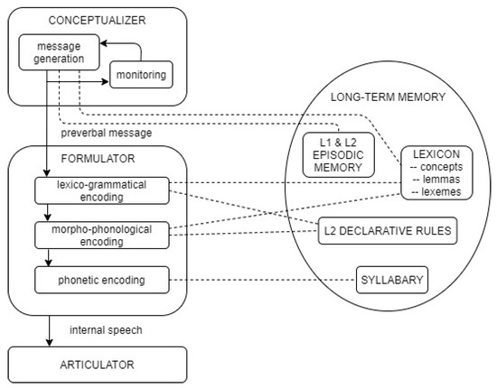 - L1 influence. As proposed by Kormos (2006), L1 and L2 concepts, lexemes (word forms), lemmas (syntactic and morphological features), syllable programs, and grammatical rules are stored together. In speech production, L1 and L2 lexical items and rules are activated together and compete for selection. When L1 knowledge and encoding procedures are transferred during L2 processing, the efficiency of L2 speech production may be negatively affected.