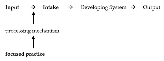 Although VanPatten’s model of input processing has been relatively popular in the last few years and given rise to a great deal of research, there has also been some criticism that his approach leaves no room for output. VanPatten (2004) argued that his model of input processing “is not per se a model or theory of acquisition” (VanPatten 2004, p. 5) in the sense that factors related to learners’ restructuring mechanisms as well as their production of language for communicative purposes do not fall within its scope. His model targets realizing the conditions under which learners make connections between surface expression and meaning in the input and the processes they make use of to acquire grammatical data. Furthermore, the author emphasized that a focus on input does not mean that output is not relevant for acquisition. In fact, input and output “play complementary roles” in the process of Second Language Acquisition, although input represents the main source of linguistic data, since it occurs at the initial stage of acquisition.